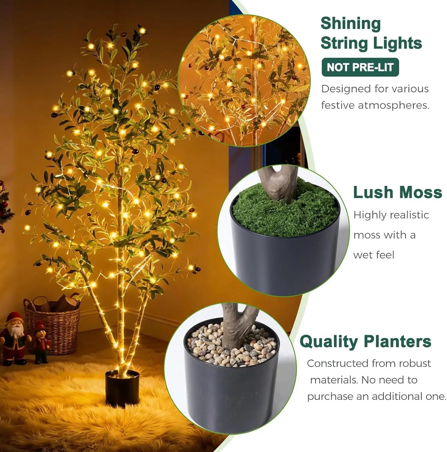 5FT Artificial Olive Tree with Planter, Moss & Lights