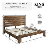 Noise Free: The king size wooden bed frame slats are equipped with EVA sponge to achieve a noiseless design. Its tight structure and specially treated joints ensure that no harsh sounds will be made when turning over or getting up, creating a quiet and comfortable sleeping environment for you. Whether it is late at night or early in the morning, you can enjoy a worry-free sleep time.