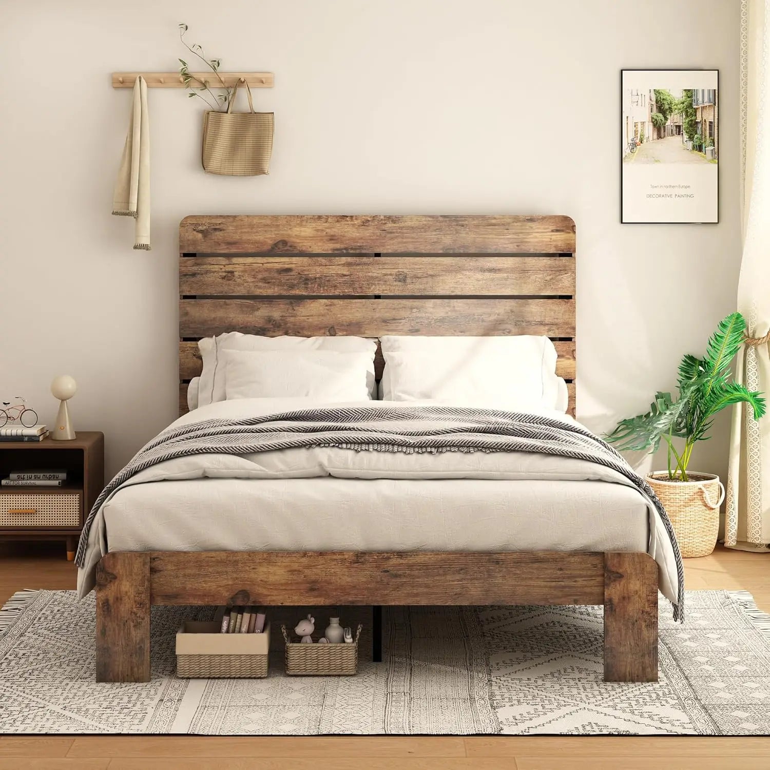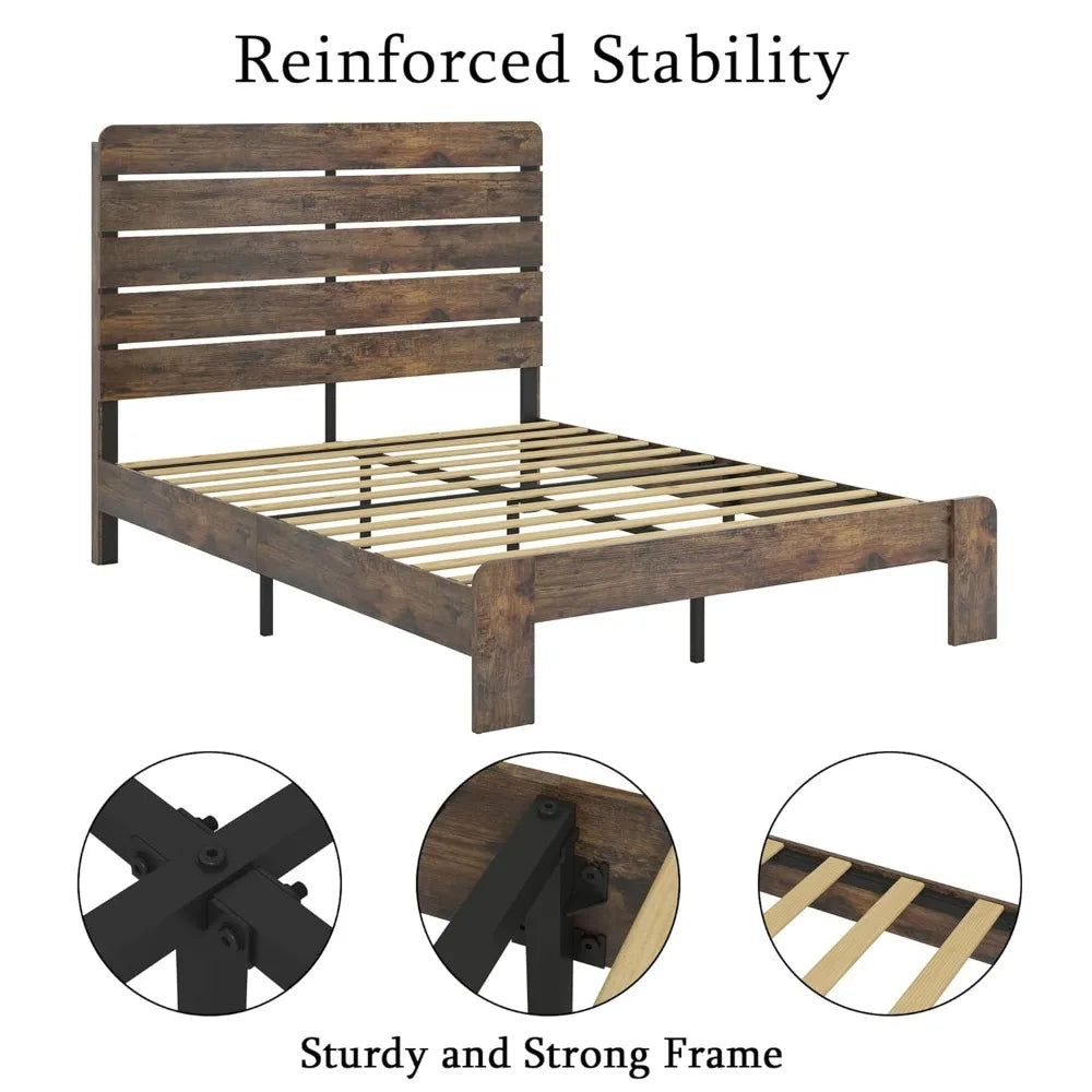 Industrial Appearance: The headboard and footboard are made up of waterproof, scratch-resistant wood panels. Rustic headboard and footboard combined with vintage wood slats are retro and elegant, adding an industrial touch and unique flavor to your room. Perfect for most rooms.