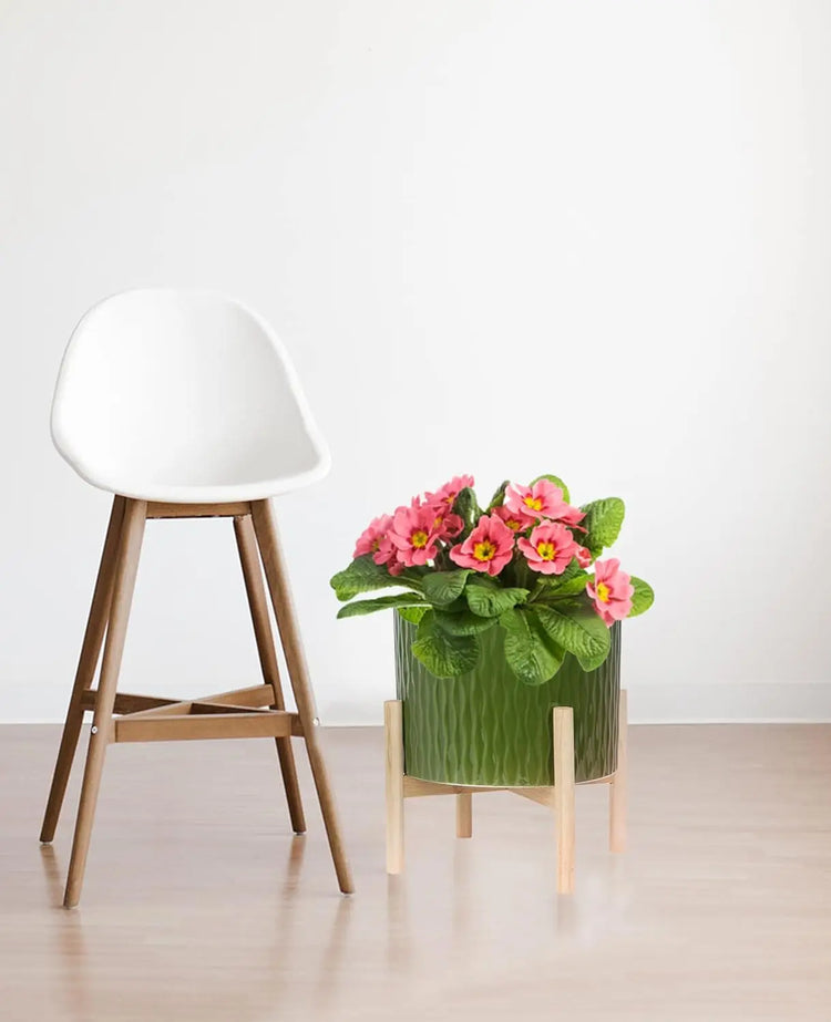10 Inch Ceramic Plant Pot with Wood Stand,