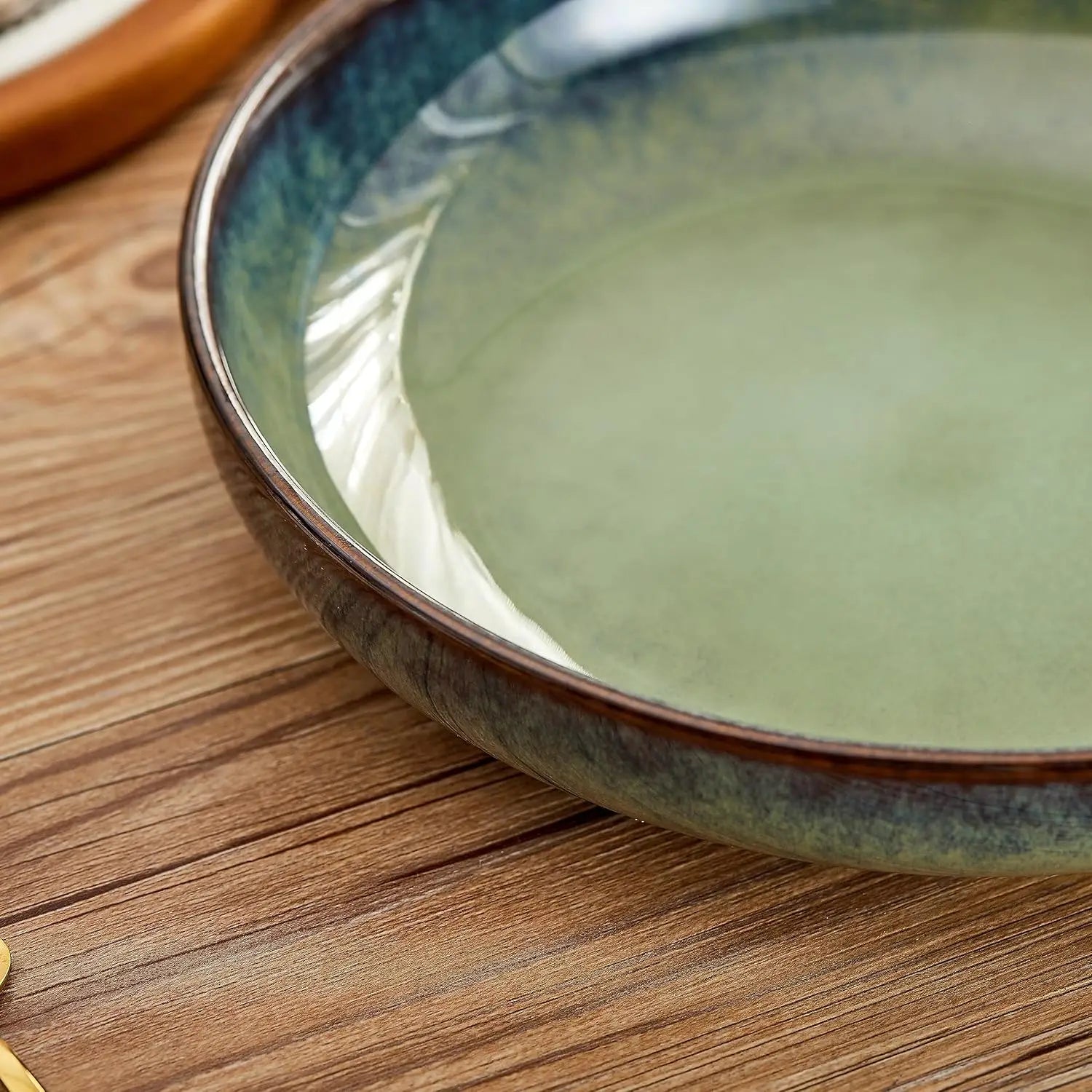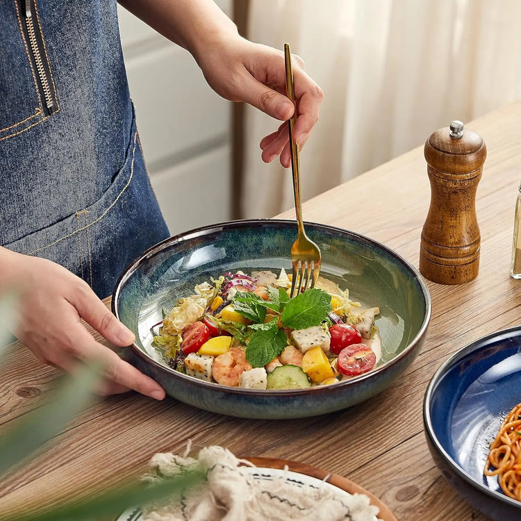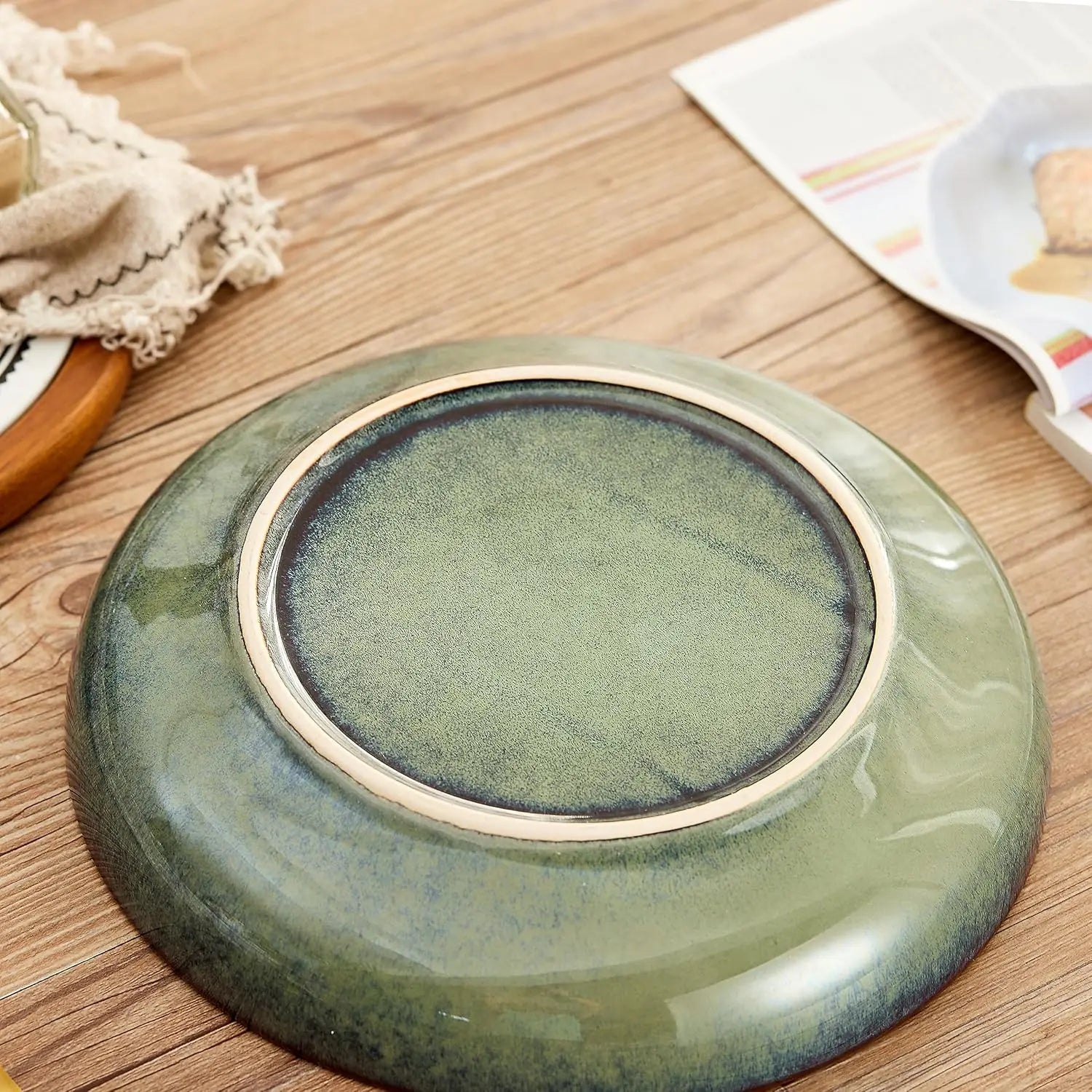 Elevate your dining experience with our versatile ceramic serving bowl, designed to meet all your kitchen needs. Crafted from high-quality, eco-friendly ceramic, this bowl is non-toxic and free from harmful chemicals like plastics, ensuring a safe and healthy option for your family. It's fully functional for everyday use: microwave-safe for quick reheating, oven-safe for baking dishes, dishwasher-safe for easy cleaning, and freezer-safe to keep ingredients fresh. Key Features: - **Large Capacity**: With a 10-inch diameter and 50-ounce volume, this bowl is perfect for serving family-sized portions of salads, soups, side dishes like ramen or pho, fruits, cereals, or as a mixing bowl for food prep. - **Durable & Stylish**: Each bowl features a unique variable glaze finish that adds timeless beauty to any table setting. The classic green color complements various decor styles and tableware sets. - **Versatile Use**: Ideal for multiple occasions such as daily meals at home, Christmas celebrations, parties with friends and family gatherings. It encourages healthy eating by providing a safe alternative to plastic containers. - **Easy Maintenance**: Clean effortlessly by hand-washing or using a dishwasher without worrying about damage or fading colors over time. This product has been recognized for its superior design trends combined with unmatched quality craftsmanship—keeping ingredients close at hand just like professional chefs do! Add elegance to your kitchen accessories collection today.