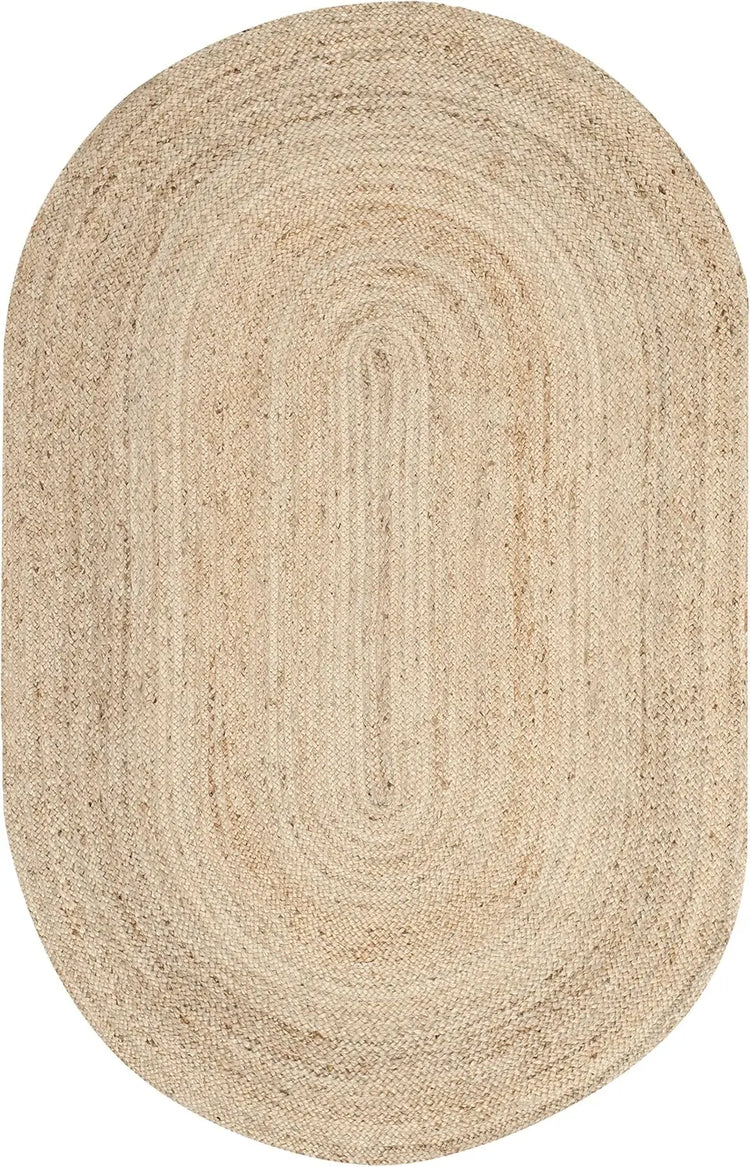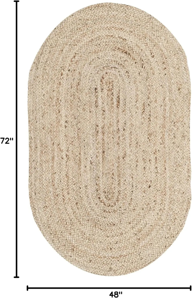 Handmade Jute Area Rug 4x6 Oval - Natural Brown Braided Flat Weave