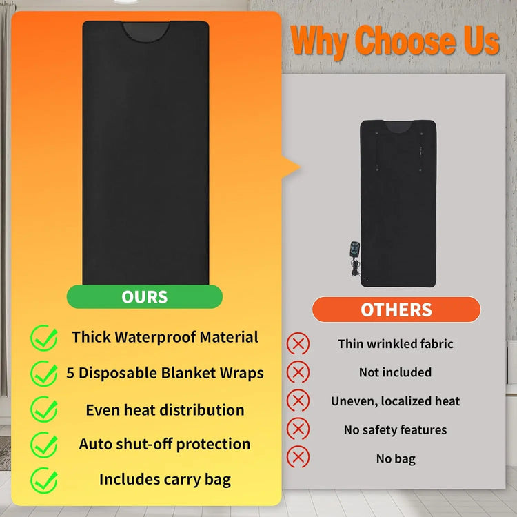 Portable Sauna Blanket for Weight Loss & Detox, 86–158℉ Heat, Timer, Remote