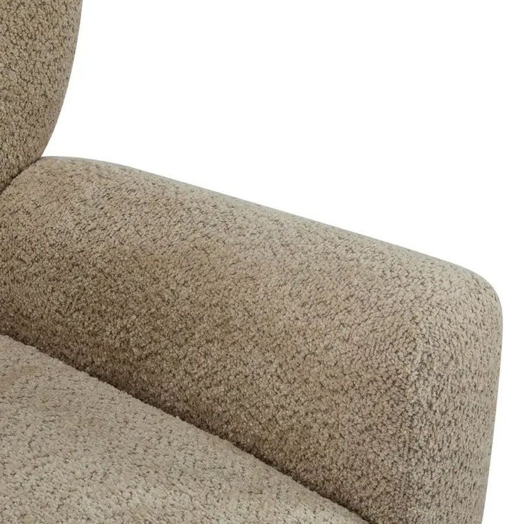 Comfy Boucle Upholstered Club Chair Sink into the luxuriously soft boucle upholstery that wraps this club chair in cozy comfort. The thick seat cushion and ergonomic contours create a plush seating experience. The textured fabric not only feels indulgent but also brings a rich, inviting look to your decor