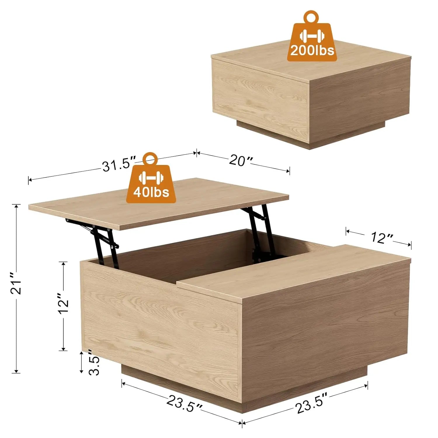 Built to Last: The wooden coffee table is made of high-density engineered wood that stand up to long term use. Stable square coffee table for living room and office can support up to 40 lbs when lift up. This square farmhouse coffee table perfectly blends strength and functionality, making it an excellent addition to any home