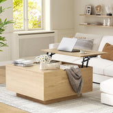 Effortless Lift-Top Design: wood coffee table is equipped with lift top design. Thanks to a smooth, high-performance lift mechanism, the tabletop effortlessly rises from 15" to 20.5", transforming your farmhouse coffee table into a floating workspace or dining area